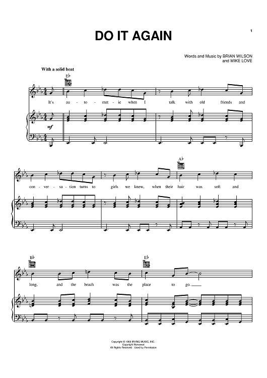 Digital Sheet Music for Do It Again by Brian Wilson, The Beach Boys, Mike Love scored for Piano/Vocal/Chords; id:367385