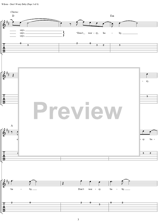 "Don't Worry Baby" Sheet Music by The Beach Boys