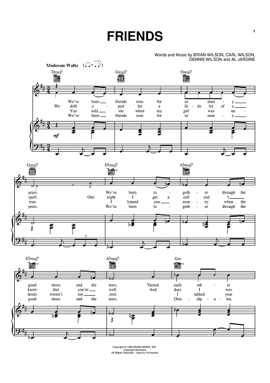"Friends" Sheet Music by The Beach Boys