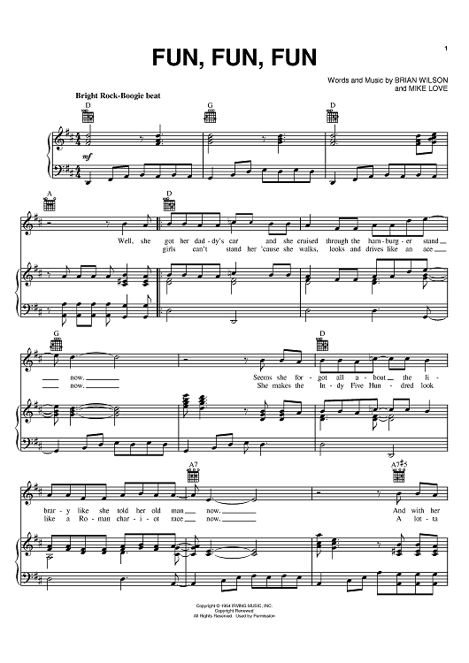 Digital Sheet Music for Fun, Fun, Fun by Brian Wilson, The Beach Boys, Mike Love scored for Piano/Vocal/Chords; id:368521