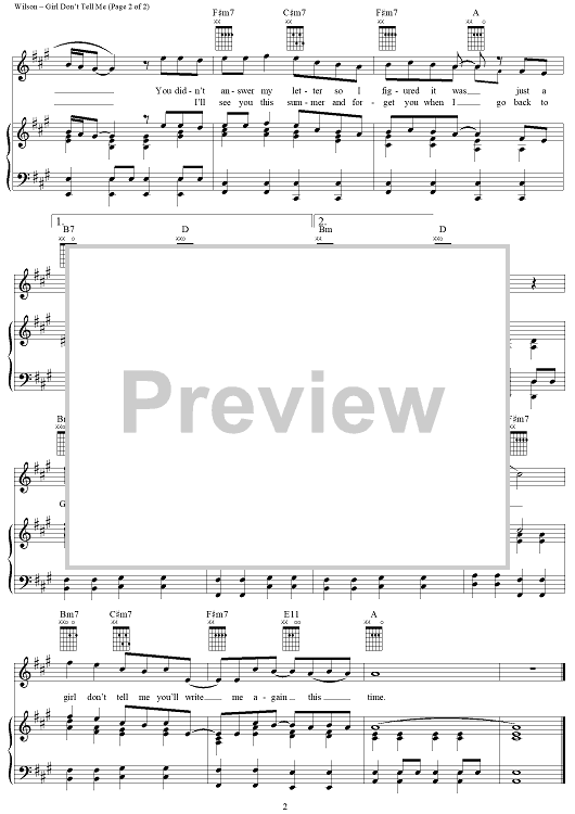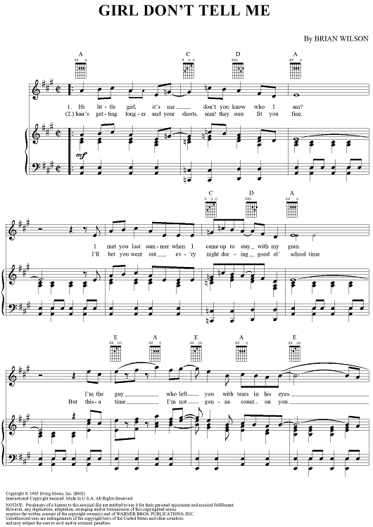 Digital Sheet Music for Girl Don't Tell Me by Brian Wilson, The Beach Boys scored for Piano/Vocal/Chords; id:264131