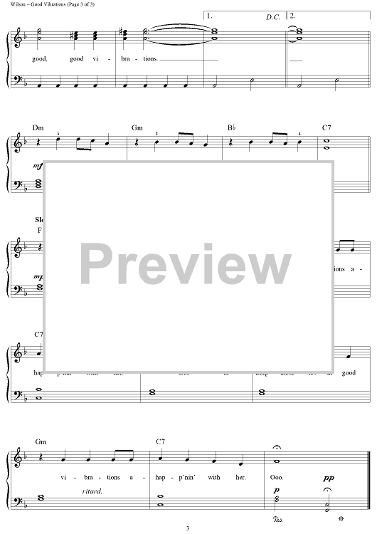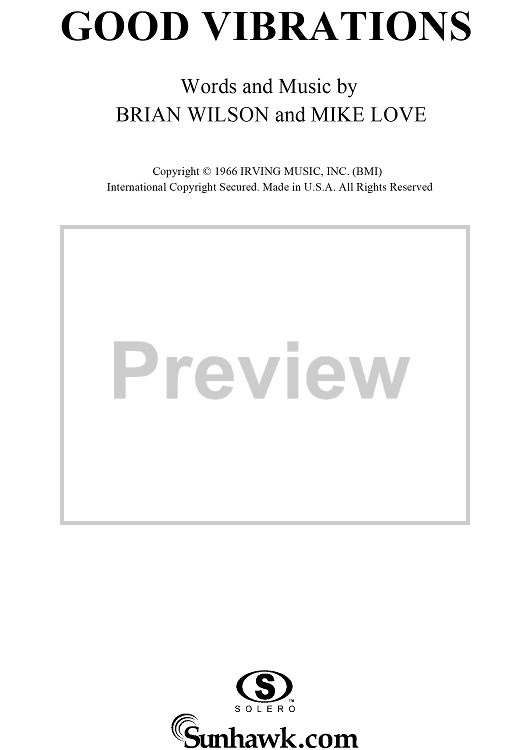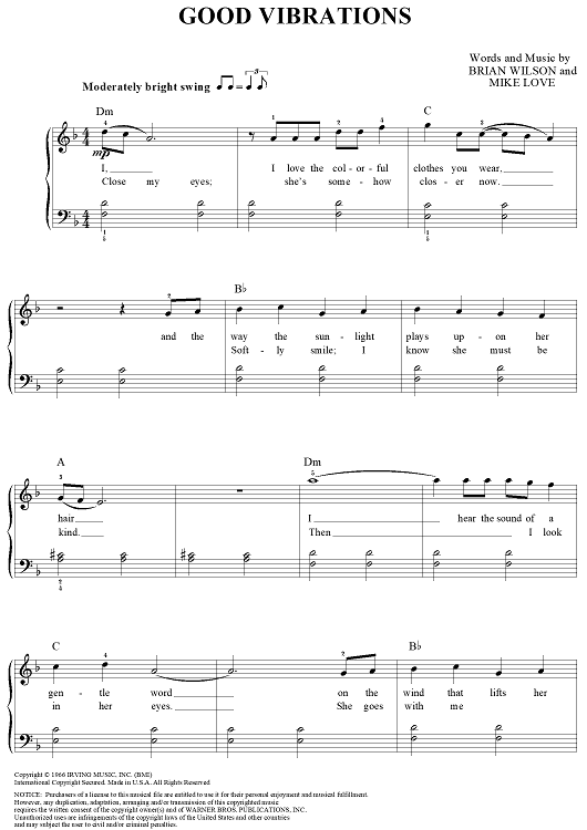 Digital Sheet Music for Good Vibrations by Brian Wilson, The Beach Boys, Mike Love scored for Easy Piano/Vocal; id:114082