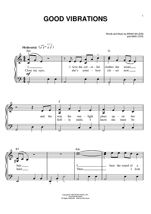 Digital Sheet Music for Good Vibrations by Brian Wilson, The Beach Boys, Mike Love scored for Easy Piano; id:367479