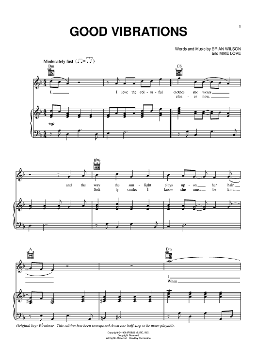 Digital Sheet Music for Good Vibrations by Brian Wilson, The Beach Boys, Mike Love scored for Piano/Vocal/Chords; id:372117