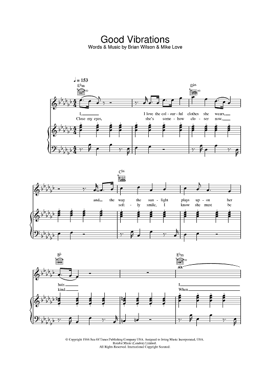 Digital Sheet Music for Good Vibrations by Brian Wilson, The Beach Boys, Mike Love scored for Piano/Vocal/Chords; id:389944