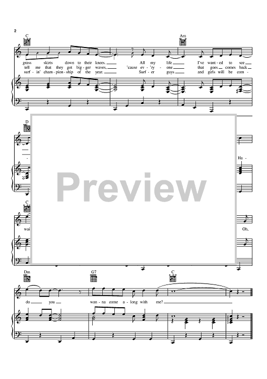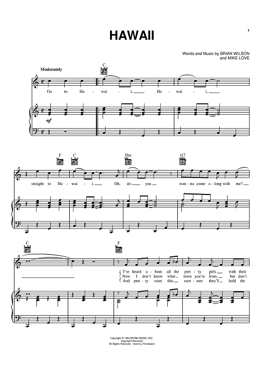 Digital Sheet Music for Hawaii by Brian Wilson, The Beach Boys, Mike Love scored for Piano/Vocal/Chords; id:370479