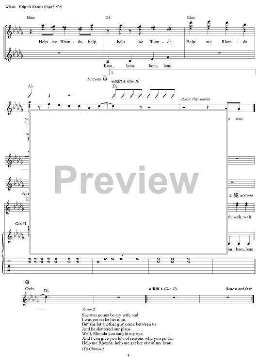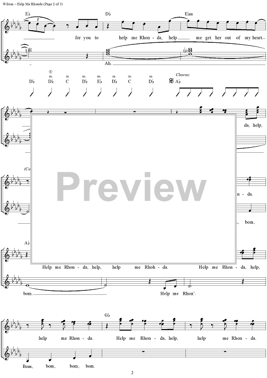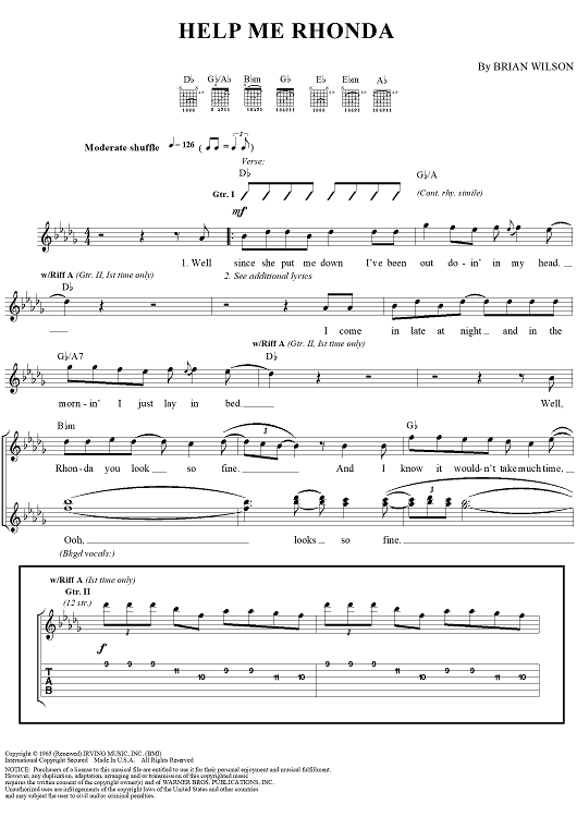 "Help Me Rhonda" Sheet Music by The Beach Boys