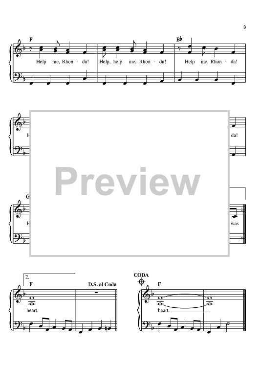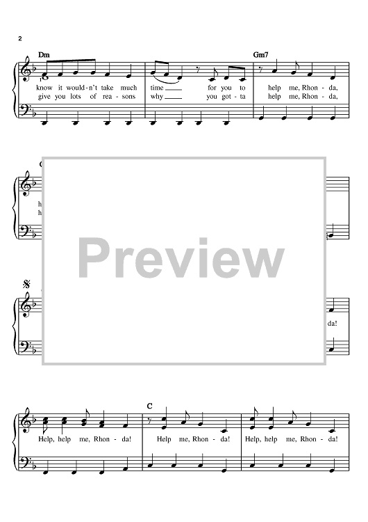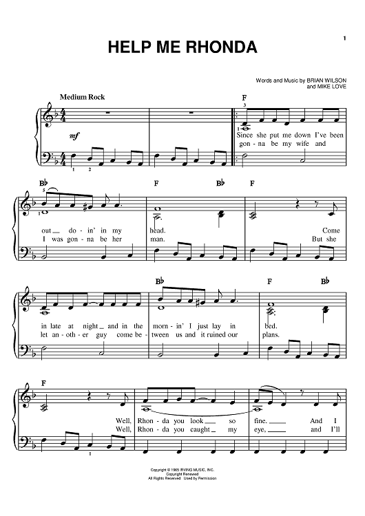 Digital Sheet Music for Help Me Rhonda by Brian Wilson, The Beach Boys, Mike Love scored for Easy Piano; id:367324