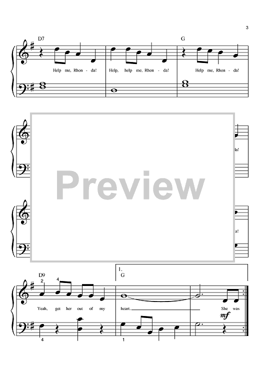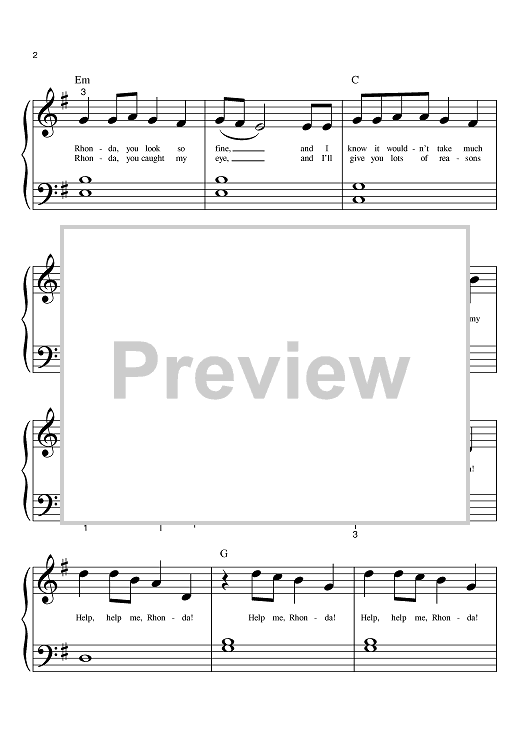 Digital Sheet Music for Help Me Rhonda by Brian Wilson, The Beach Boys, Mike Love scored for Big Note Piano; id:367366