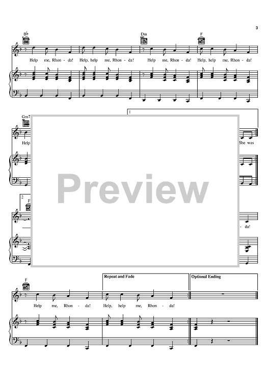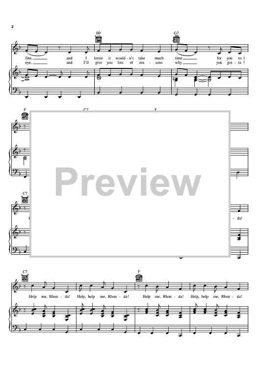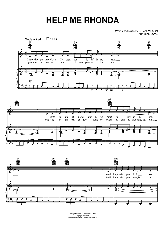 Digital Sheet Music for Help Me Rhonda by Brian Wilson, The Beach Boys, Mike Love scored for Piano/Vocal/Chords; id:368523