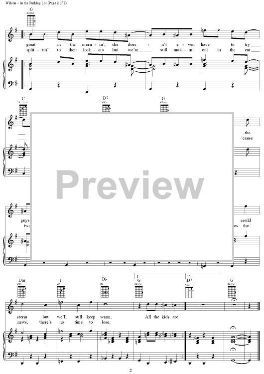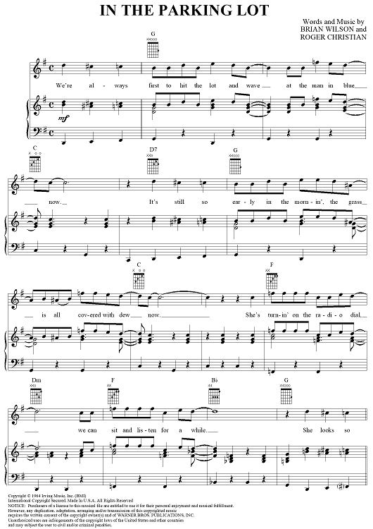 Digital Sheet Music for In the Parking Lot by Brian Wilson, The Beach Boys, Hot Dog Rog scored for Piano/Vocal/Chords; id:264033