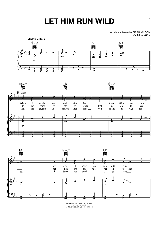 Digital Sheet Music for Let Him Run Wild by Brian Wilson, The Beach Boys, Mike Love scored for Piano/Vocal/Chords; id:370480