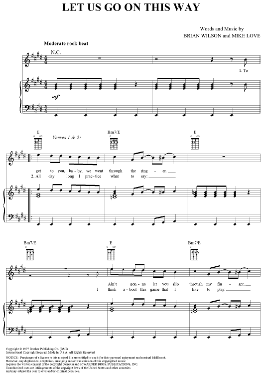 Digital Sheet Music for Let Us Go On This Way by Brian Wilson, The Beach Boys, Mike Love scored for Piano/Vocal/Chords; id:264193