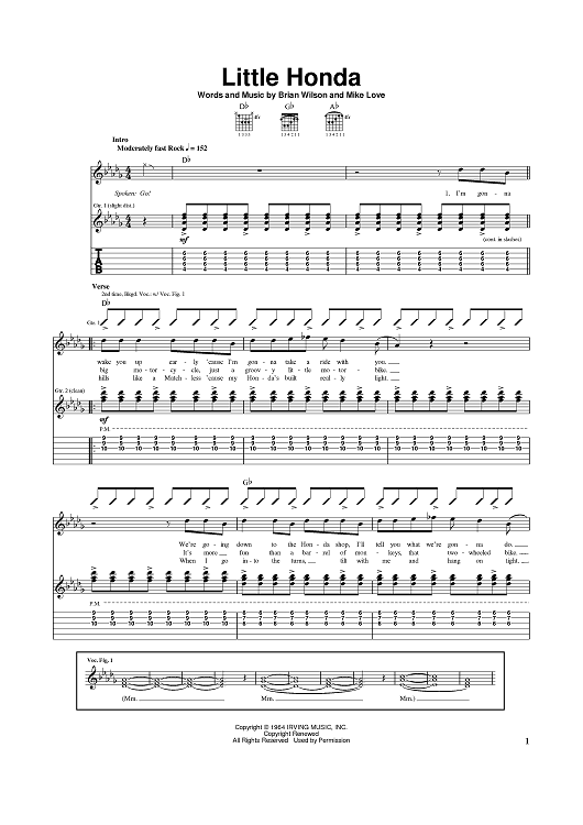 Digital Sheet Music for Little Honda by Brian Wilson, The Beach Boys, Mike Love scored for Guitar Tab; id:367661