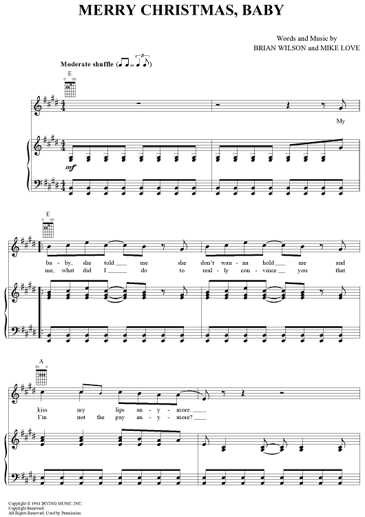 Digital Sheet Music for Merry Christmas, Baby by Brian Wilson, The Beach Boys, Mike Love scored for Piano/Vocal/Chords; id:366909