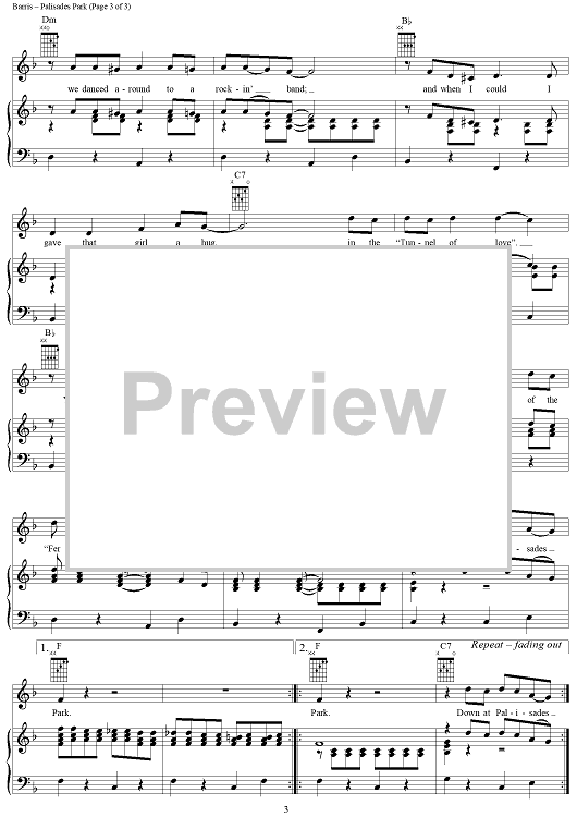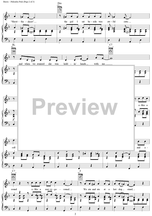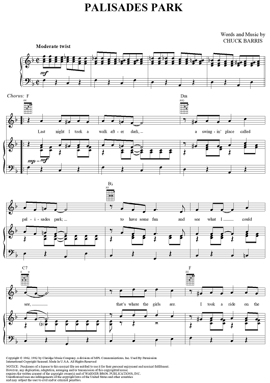 Digital Sheet Music for Palisades Park by The Beach Boys, Chuck Barris scored for Piano/Vocal/Chords; id:276201