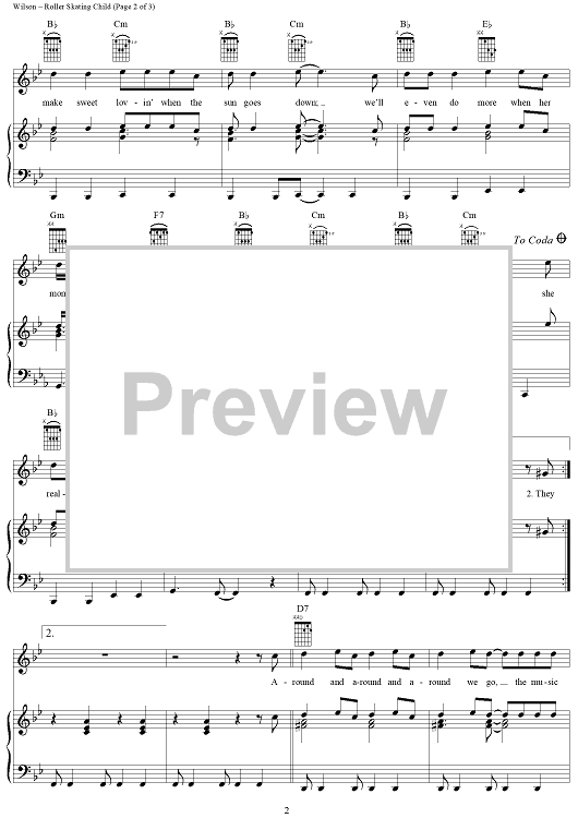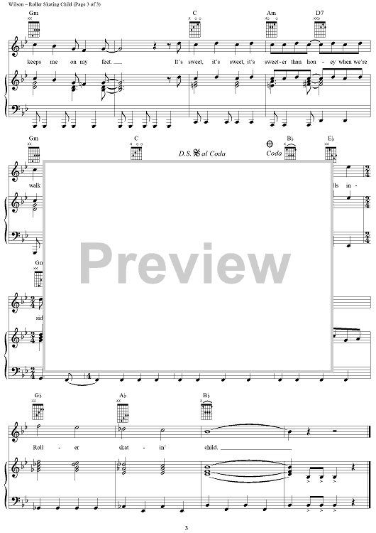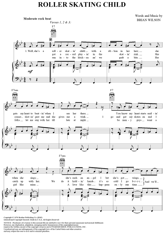 Digital Sheet Music for Roller Skating Child by Brian Wilson, The Beach Boys scored for Piano/Vocal/Chords; id:263965