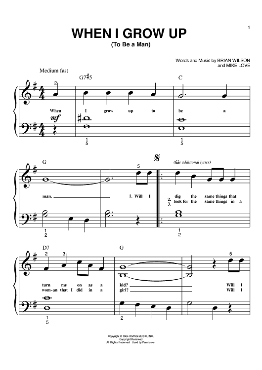 Digital Sheet Music for When I Grow Up (To Be A Man) by Brian Wilson, The Beach Boys, Mike Love scored for Big Note Piano; id:367369