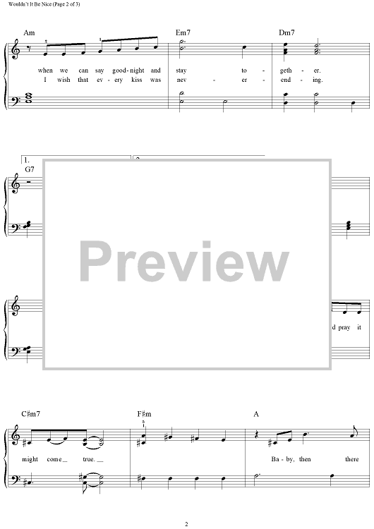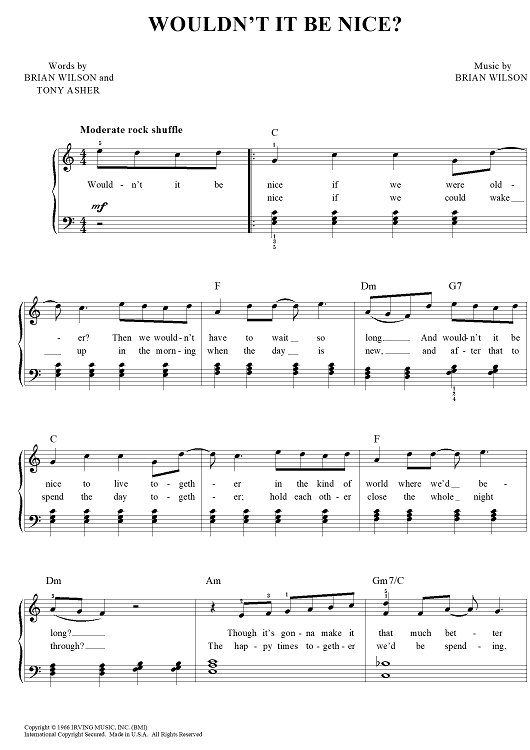 "Wouldn't It Be Nice?" Sheet Music by The Beach Boys