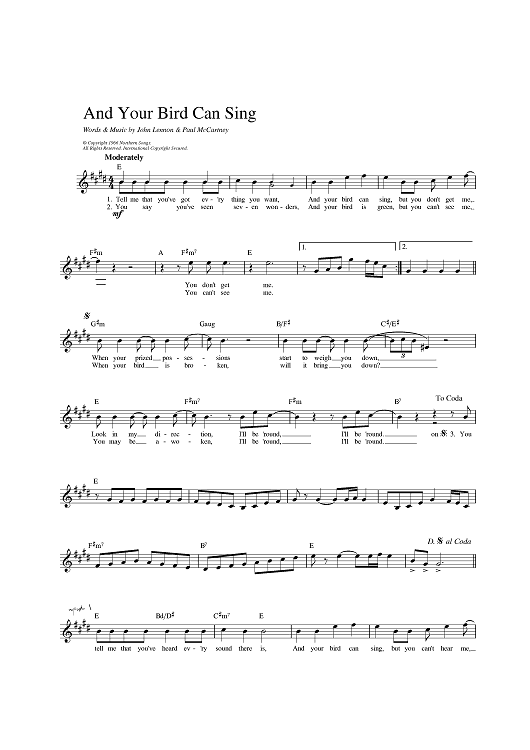 Digital Sheet Music for And Your Bird Can Sing by Paul McCartney, The Beatles, John Lennon scored for Lead Sheet; id:379114
