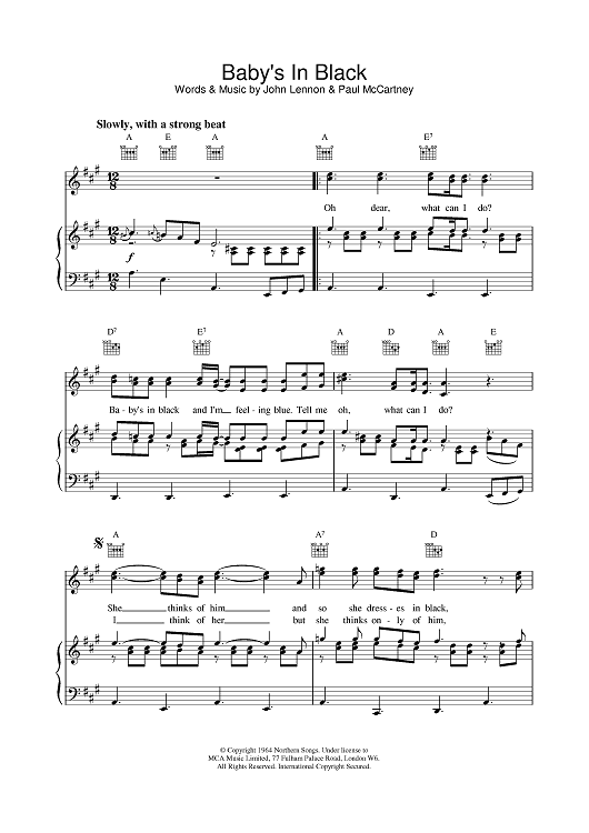 Digital Sheet Music for Baby's In Black by Paul McCartney, The Beatles, John Lennon scored for Piano/Vocal/Chords; id:377345