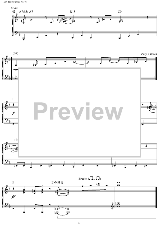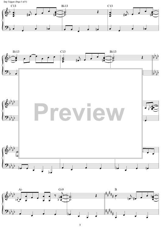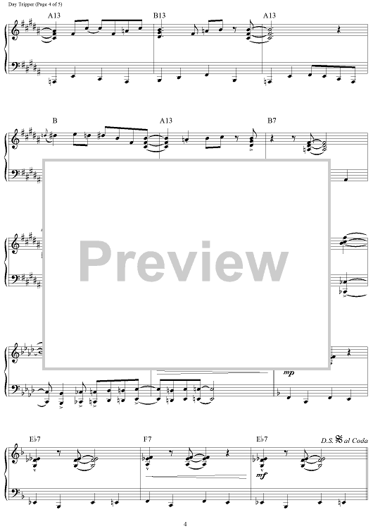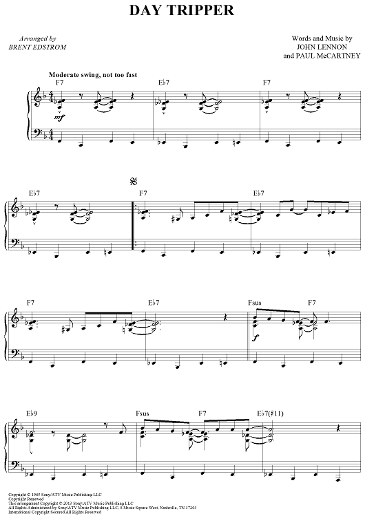 Digital Sheet Music for Day Tripper by Paul McCartney, The Beatles, John Lennon, Brent Edstrom scored for Piano Solo; id:460208