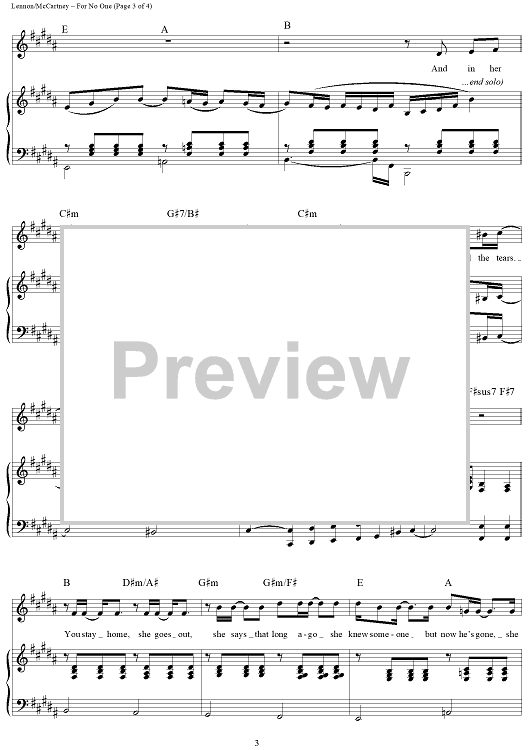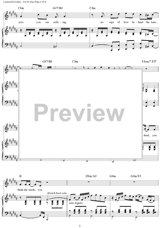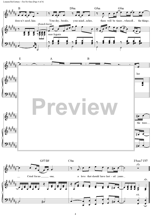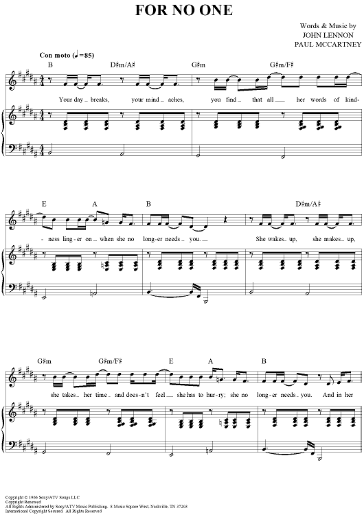 Digital Sheet Music for For No One by Paul McCartney, The Beatles, John Lennon scored for Piano/Vocal/Chords; id:360921