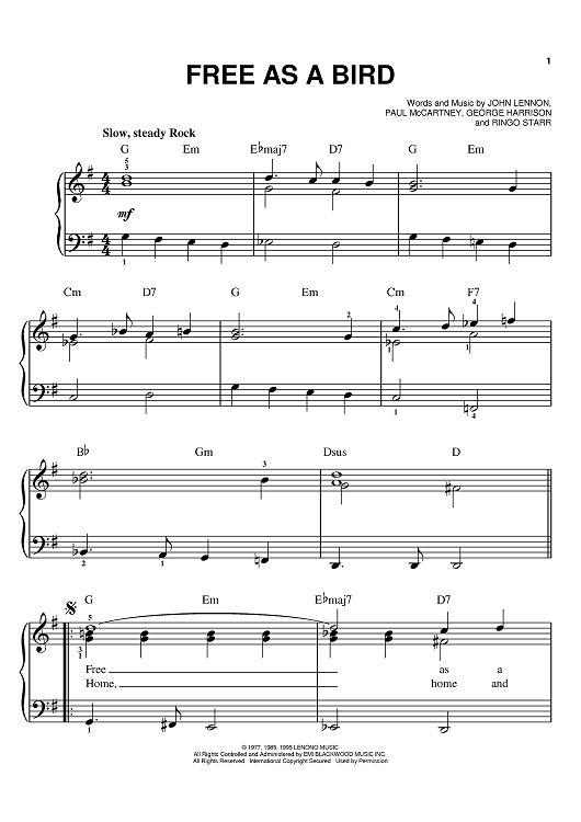 Digital Sheet Music for Free As A Bird by Paul McCartney, The Beatles, George Harrison, John Lennon, Ringo Starr scored for Easy Piano; id:367943