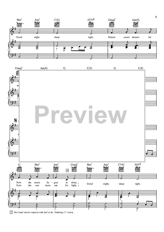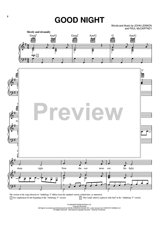 Digital Sheet Music for Good Night by Paul McCartney, The Beatles, John Lennon scored for Piano/Vocal/Chords; id:368366
