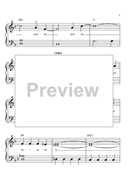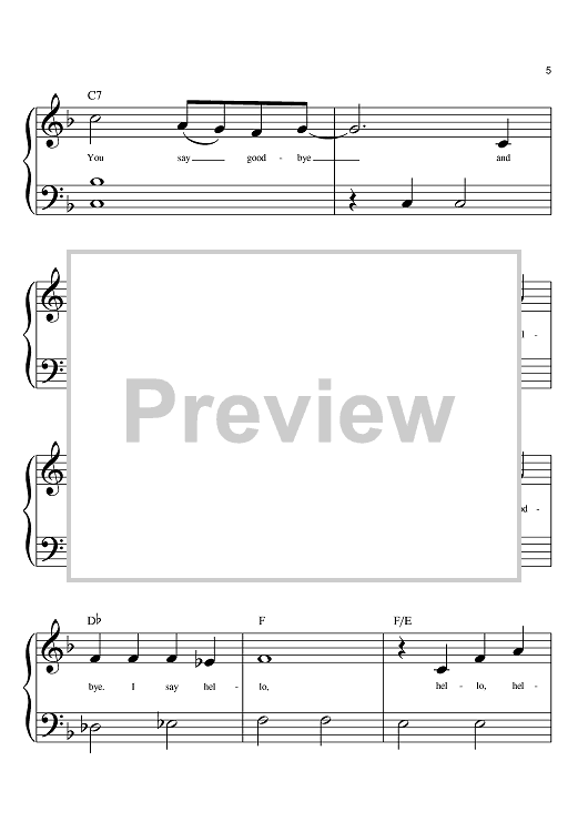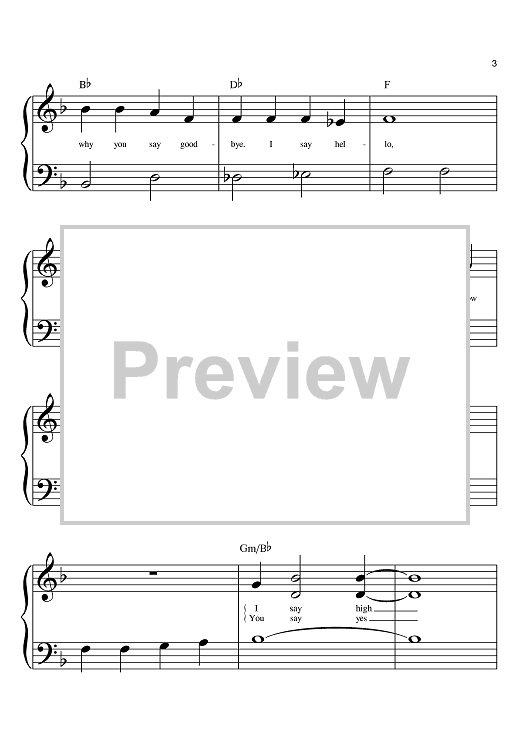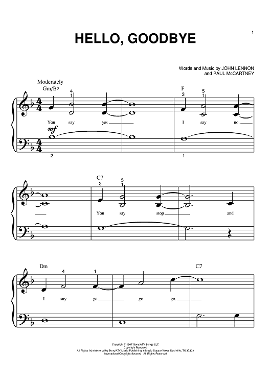 Digital Sheet Music for Hello, Goodbye by Paul McCartney, The Beatles, John Lennon scored for Big Note Piano; id:396708