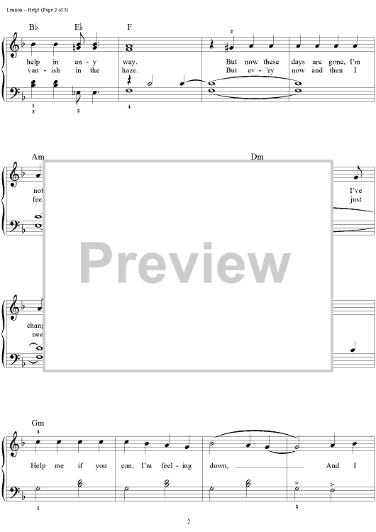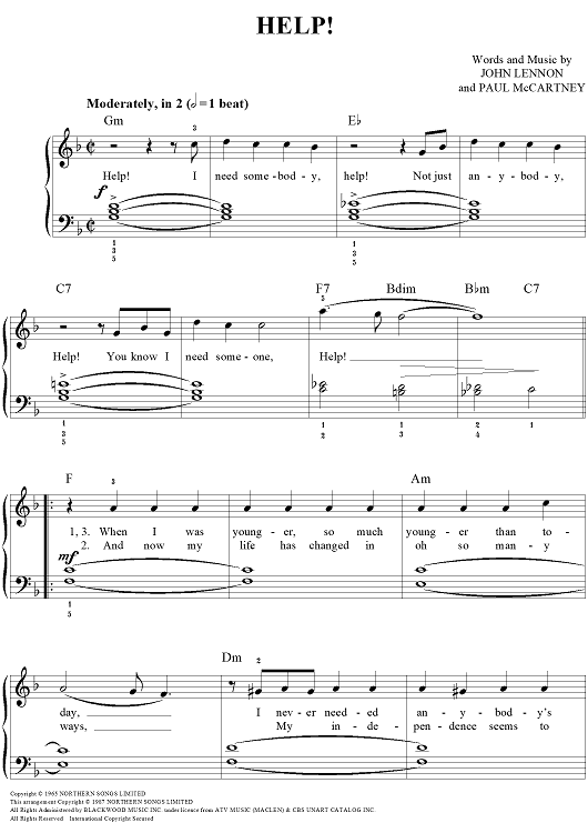 Digital Sheet Music for Help! by Paul McCartney, The Beatles, John Lennon scored for Easy Piano/Vocal/Chords; id:449757