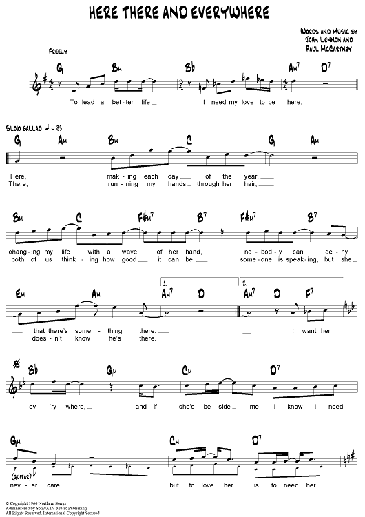 Digital Sheet Music for Here There and Everywhere by Paul McCartney, The Beatles, John Lennon scored for Lead Sheet; id:361950