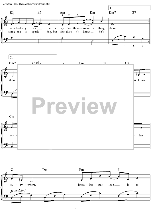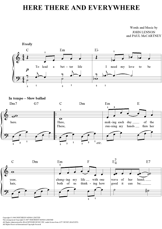 Digital Sheet Music for Here There and Everywhere by Paul McCartney, The Beatles, John Lennon scored for Easy Piano/Vocal/Chords; id:449554