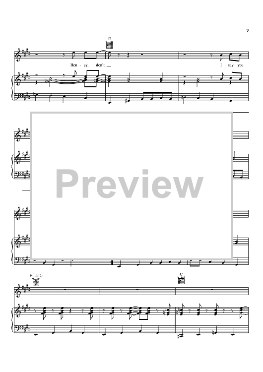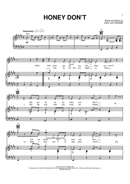 Digital Sheet Music for Honey Don't by The Beatles, Carl Lee Perkins scored for Piano/Vocal/Chords; id:369869