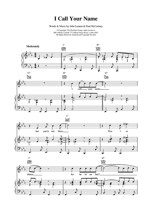 Digital Sheet Music for I Call Your Name by Paul McCartney, The Beatles, John Lennon scored for Piano/Vocal/Chords; id:377398