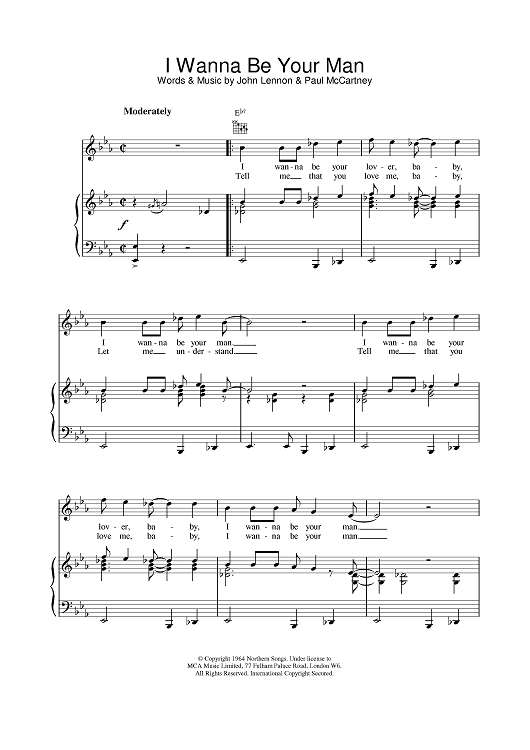 Digital Sheet Music for I Wanna Be Your Man by Paul McCartney, The Beatles, John Lennon scored for Piano/Vocal/Chords; id:376126