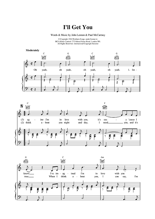 Digital Sheet Music for I'll Get You by Paul McCartney, The Beatles, John Lennon scored for Piano/Vocal/Chords; id:376129
