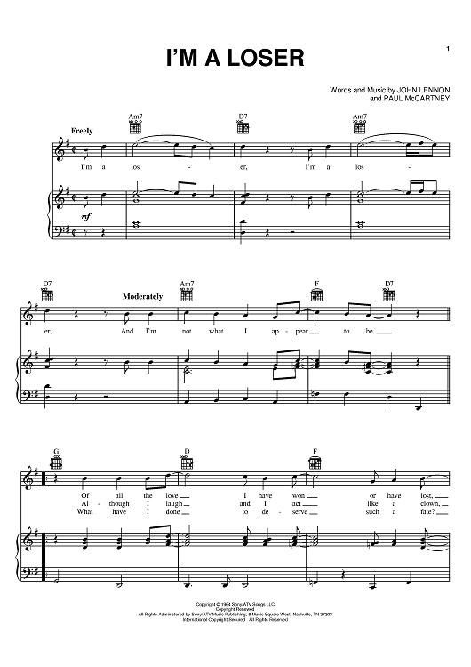 Digital Sheet Music for I'm A Loser by Paul McCartney, The Beatles, John Lennon scored for Piano/Vocal/Chords; id:373063