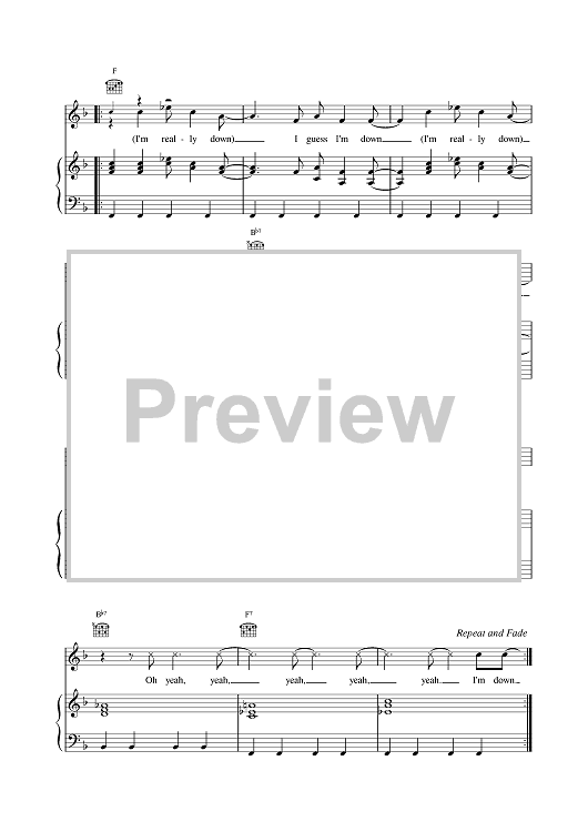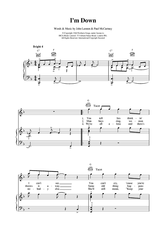 Digital Sheet Music for I'm Down by Paul McCartney, The Beatles, John Lennon scored for Piano/Vocal/Chords; id:380088