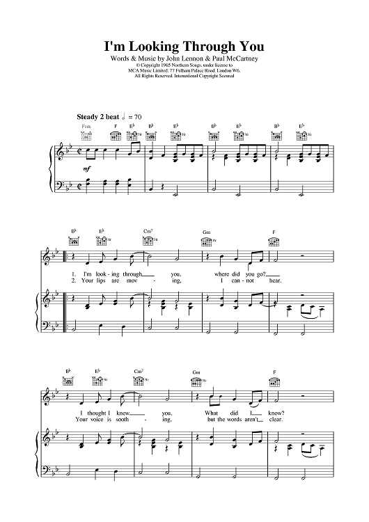 Digital Sheet Music for I'm Looking Through You by Paul McCartney, The Beatles, John Lennon scored for Piano/Vocal/Chords; id:379824
