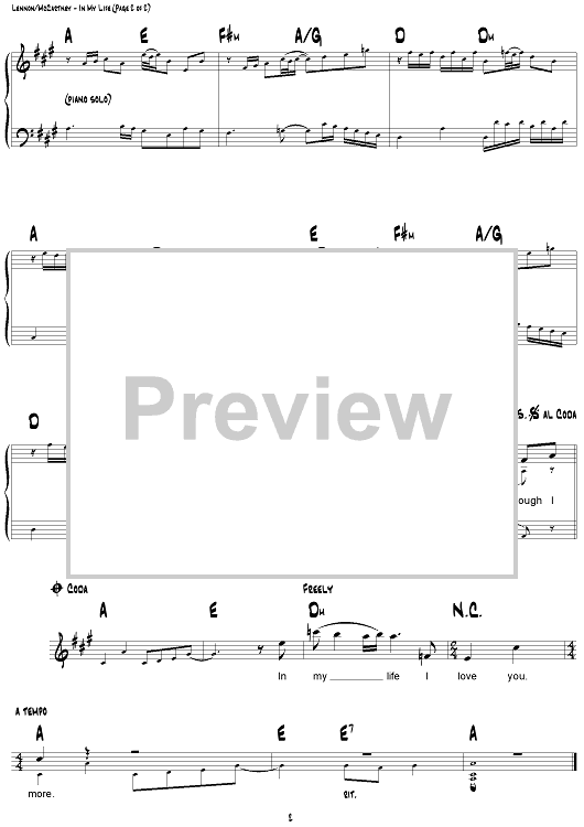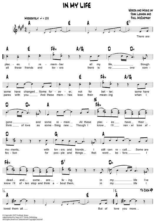 Digital Sheet Music for In My Life by Paul McCartney, The Beatles, John Lennon scored for Lead Sheet; id:361951