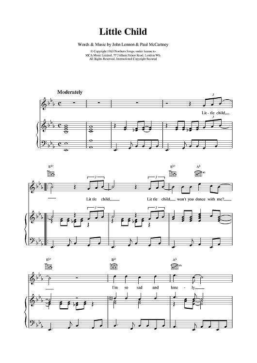 Digital Sheet Music for Little Child by Paul McCartney, The Beatles, John Lennon scored for Piano/Vocal/Chords; id:376107