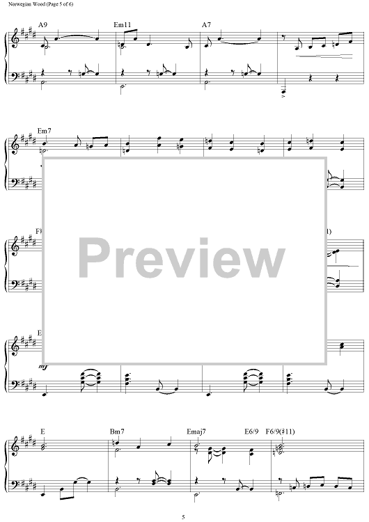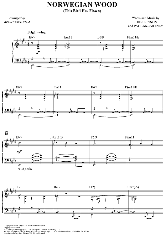 Digital Sheet Music for Norwegian Wood (This Bird Has Flown) by Paul McCartney, The Beatles, John Lennon, Brent Edstrom scored for Piano Solo; id:460020