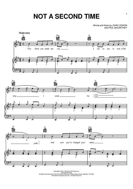 Digital Sheet Music for Not A Second Time by Paul McCartney, The Beatles, John Lennon scored for Piano/Vocal/Chords; id:394801