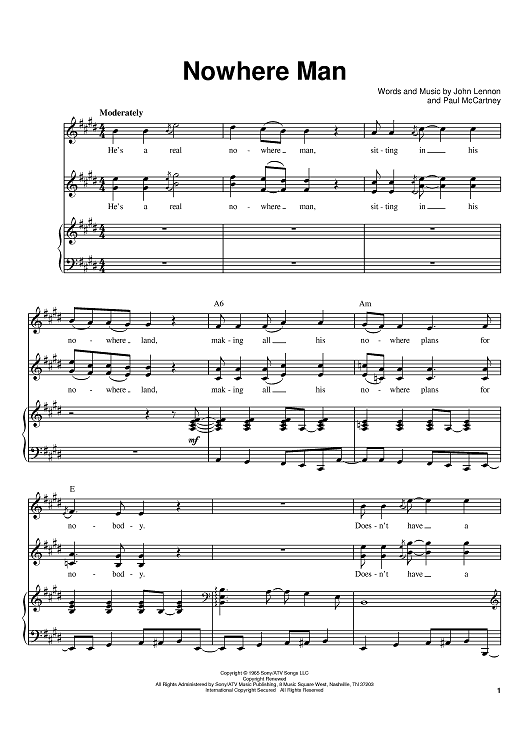 Digital Sheet Music for Nowhere Man by Paul McCartney, The Beatles, John Lennon scored for Piano/Vocal/Chords; id:371695