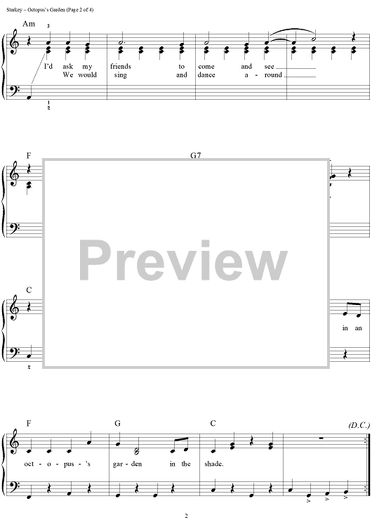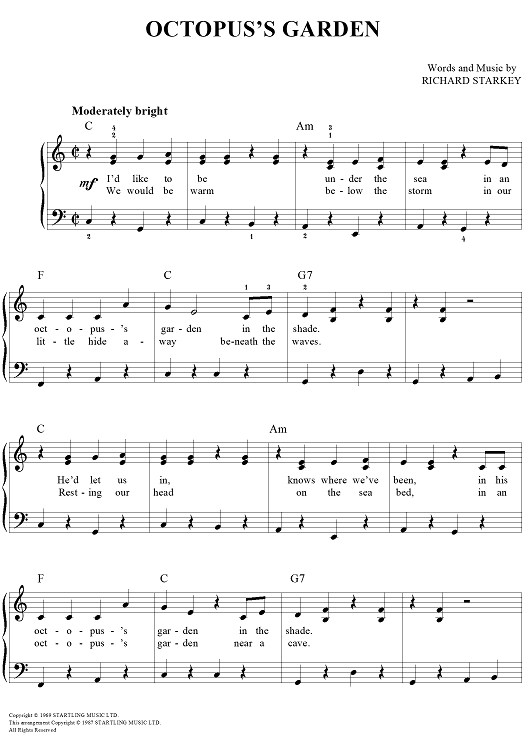Digital Sheet Music for Octopus's Garden by The Beatles, Richard Starkey scored for Easy Piano/Vocal/Chords; id:450172