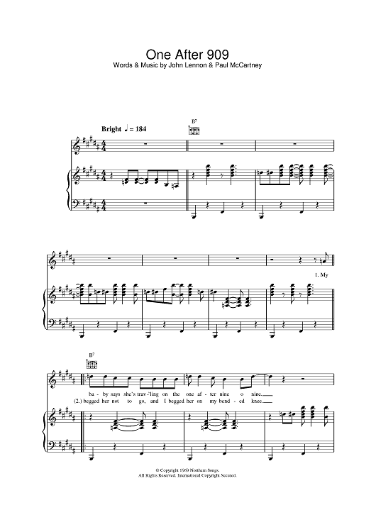 Digital Sheet Music for One After 909 by Paul McCartney, The Beatles, John Lennon scored for Piano/Vocal/Chords; id:377444
