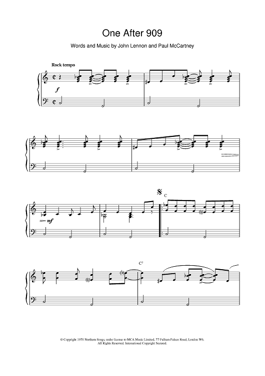Digital Sheet Music for One After 909 by Paul McCartney, The Beatles, John Lennon scored for Piano; id:380872