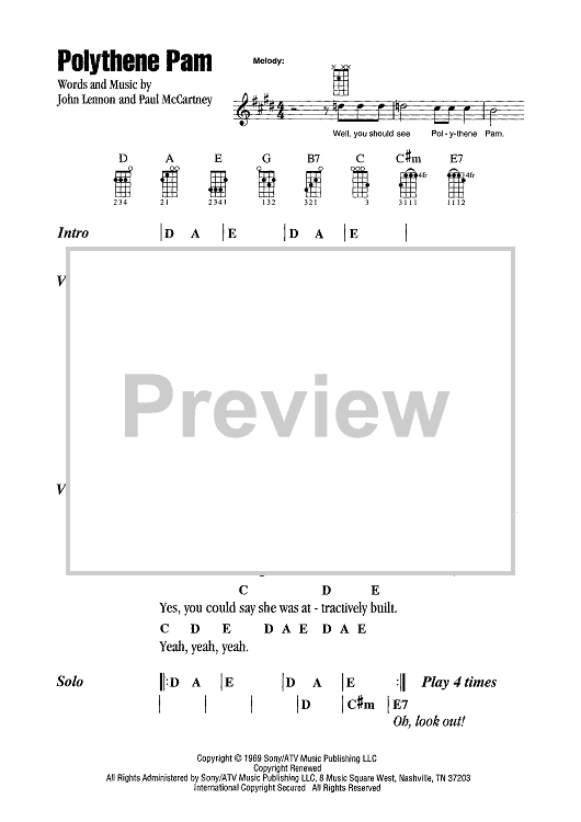 Digital Sheet Music for Polythene Pam by Paul McCartney, The Beatles, John Lennon scored for Ukulele/Vocal; id:466518