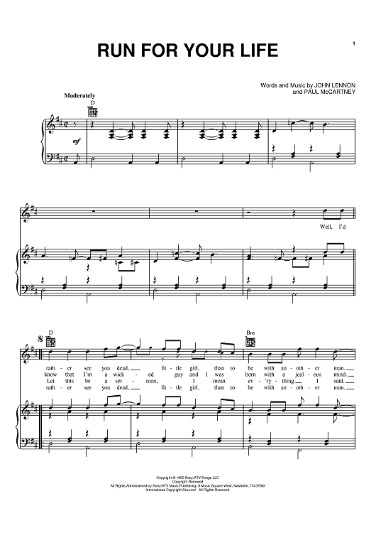 "Run For Your Life" Sheet Music by The Beatles